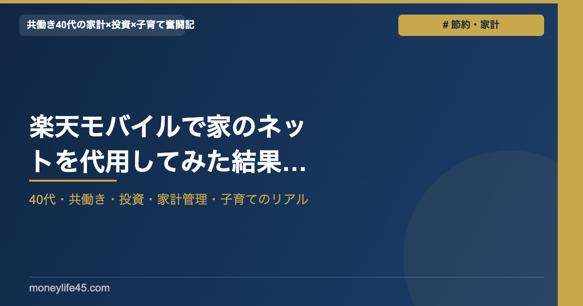 こんにちは、共働き子育て真っ最中サラリーマンのけんいちです。固定費削減の一環で「光回線をやめて、楽天モバイルで家のネットを代用できるか」を試してみました。結論を先に言うと、正直なところ後悔しました。今回はその理由と対策を詳しくお伝えします。
