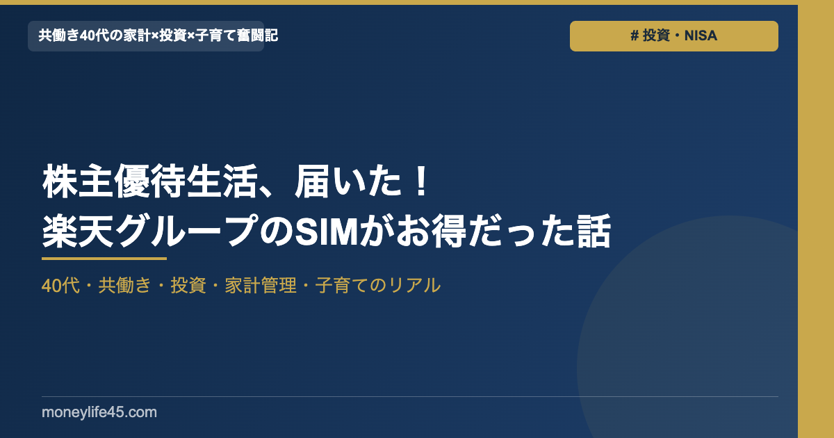 こんばんは。共働き・子育て真っ最中のサラリーマン、けんいちです。我が家ではインデックス投資をメインとしつつも、少しだけ高配当株や株主優待株も組み入れています。今回は、楽天グループ(4755)の株主優待「楽天モバイルSIM 1年間無料」が届いたので、詳しくレポートします。